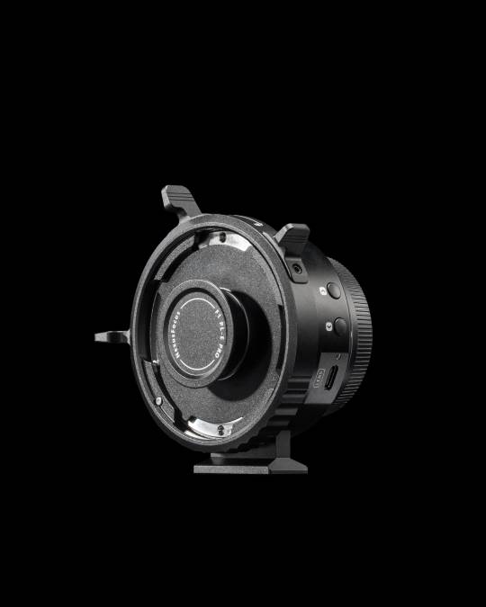 Compact, but with powerful performance, the motor responds with remarkable speed and precision. The standard USB type-C power port offers broad compatibility with professional equipment, and seamless connectivity. The motor is powered by an external source to ensure reliable operation. The dust-resistant seal at the camera mount end of the adapter protects equipment and preserves image integrity. The unit’s durable but lightweight aluminum alloy and stainless steel construction ensures reliability and a long operating life. A detachable tripod mount allows for flexible support.