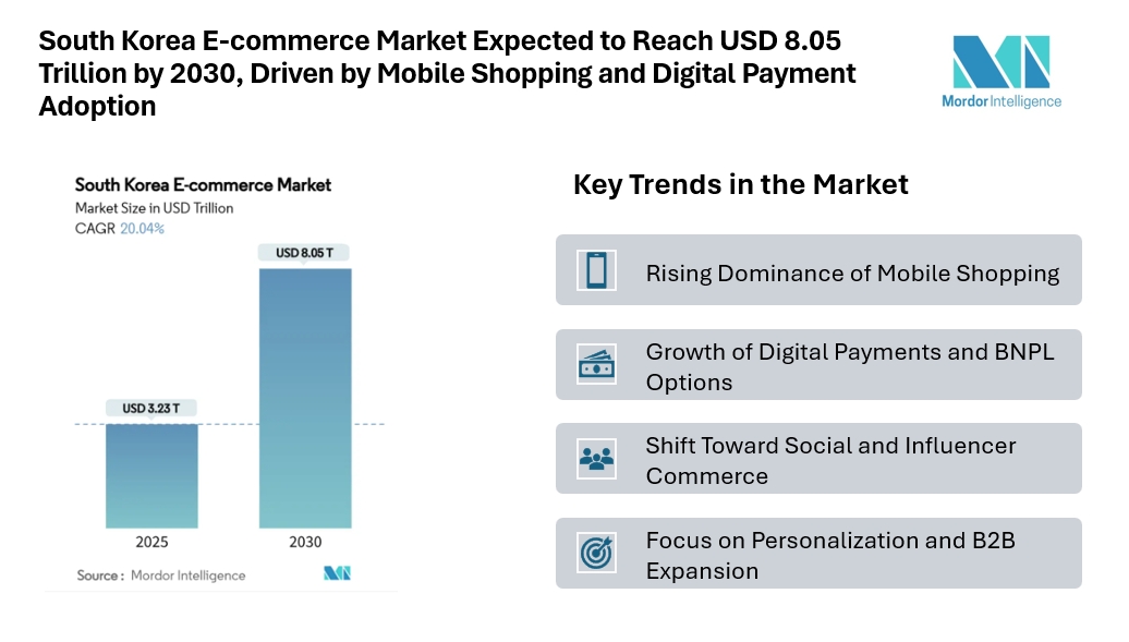 South Korea E-commerce Market Expected to Reach USD 8.05 Trillion by 2030, Driven by Mobile Shopping and Digital Payment Adoption